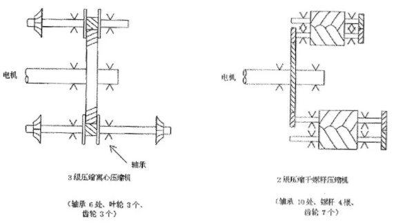 干螺桿壓縮機的兩根螺桿以面相對,因此它的特點是稍稍接觸便會形成面接觸,引起發(fā)熱膨脹,燒焦并卡死,而另一方面,離心式壓縮機最大的特點,是葉輪葉片與蝸殼是以線相對,因此即使發(fā)生若干接觸也是線接觸,葉片如刀片般劃過,不會燒焦。因此,它最大的優(yōu)點是事故比干式螺桿壓縮機要少得多。